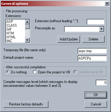 General options for the ASPC IDE